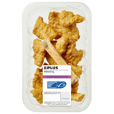 98,4% Kibbeling (83,6% ALASKA KOOLVIS* (VIS), raapzaadolie, maïsmeel, water, TARWEMEEL, aardappelzetmeel, rijstmeel, dextrine, kruiden en specerijen (paprika, peper, kurkuma, chilipeper), natuurlijk aroma, zout, gist, uienpoeder, conserveermiddel: natriumacetaten, zuurteregelaar: natriumcarbonaten, stabilisator: hydroxypropylmethylcellulose), 1,6% specerijenmix (zout, TARWEBLOEM, natuurlijke aroma's (bevat SELDERIJ), specerijen (paprika, chilipeper, peper). *Theragra chalcogramma, vangstgebied Noordwest Stille Oceaan (FAO 61) en Noordoost Stille Oceaan (FAO 67), vangstmethode: trawlnetten.