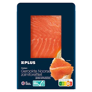 97% Regenboogforel* (VIS), zout, conserveermiddel: E267, suiker, rook. *Regenboogforel (Oncorhynchus mykiss), gekweekt in Noorwegen. Kweekmethode: kooien in zee. E= door EU goedgekeurde hulpstof.