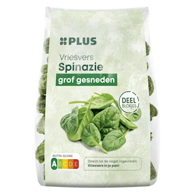 Magnetron (700W): verwarm 200 gram bevroren gesneden bladspinazie 5 minuten in een afgedekte schaal. Doorroeren en nogmaals 3 minuten verwarmen.