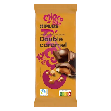 Melkchocolade met 30% karamel en 20% melkvulling met karamelsmaak