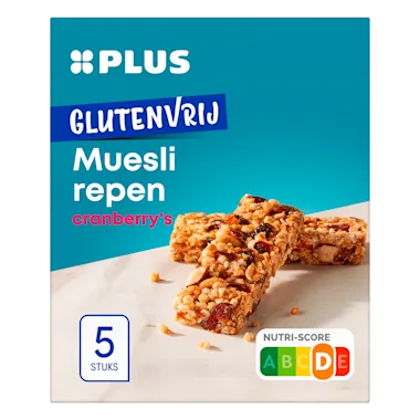 Glutenvrije mueslirepen met pinda's, gedroogd fruit en amandel