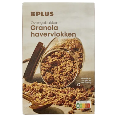 Voor de productie van 100 g granola is 66 g volkoren havervlokken, 18 g volkoren speltvlokken, 13 g honing en 4 g gepofte haver gebruikt.