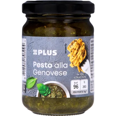 Plus Pesto Genovese wordt in Italie geproduceerd van Italiaanse basilicum in combinatie met parmezaanse kaas, maar liefst 12% pijnboompitten en extra vergine olijfolie. Een heerlijke pesto om te smeren of te dippen. De pesto kan zowel warm als koud gebruikt worden en is heerlijk door tal van gerechten.