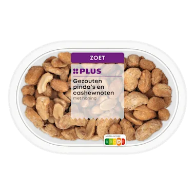Gezouten mix van pinda's en cashewnoten met een suikerlaagje met honing