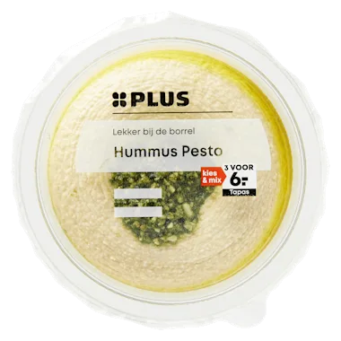 Ingrediënten :51% gerehydrateerde kikkererwten, water, raapzaadolie, 10% SESAMPASTA, 5% groene pesto (raapzaadolie,13% basilicum,11% geraspte kaas (gepasteuriseerde MELK, aardappelzetmeel, zout, zuursel, dierlijk stremsel, kleurstof: E160b(ii)/E160a, conserveermiddel: E251), 11% spinazie, 7% pijnboompitten, CASHEWNOTEN, witte wijnazijn, knoflook, zout, uienpoeder, conserveermiddel: E202), knoflook, zuurteregelaar: E267, zout, voedingszuur: E330/E270, conserveermiddel: E202, komijn.