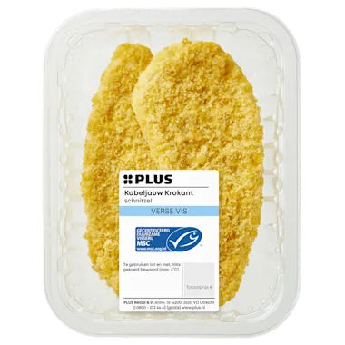 Vis krokant schnitzel, gepaneerd, voorgebakken, ontdooid.