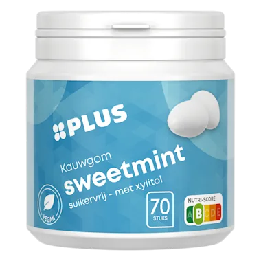 Ingrediënten :64% zoetstof: 37% xylitol/sorbitolen/mannitol/maltitolen/sucralose/Acesulfaam-K, gombasis, vulstof: E170, rijstzetmeel, stabilisator: Arabische gom, aroma’s (o.a. muntsmaak), bevochtigingsmiddel: E422, zuurteregelaar: E500, emulgator: E322, glansmiddel: E903.