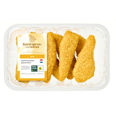 Koekenpan: verhit boter of olie in een pan en bak de gepaneerde kipfilethaasjes in ca. 6 minuten rondom bruin. Regelmatig keren. Airfryer (200℃): doe de gewenste hoeveelheid gepaneerde kipfilethaasjes in het mandje (max. 2 stuks) en verhit 10 minuten in een voorverwarmde airfryer.