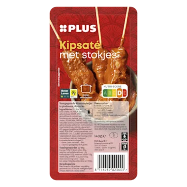 Ingrediënten :57% PINDASAUS (water, 14% PINDA, suiker, gehydrolyseerd SOJA-EIWIT, gemodificeerd maiszetmeel, tomatenpuree, melasse, zout, SOJASAUS (water, SOJABONEN, TARWE, zout), azijn, natuurlijke aroma's, conserveermiddel: E202, gebrande suiker, gistextract, zoethoutextract, invertsuikerstroop, salmiak, specerijen), 43% gegaard satéblokje (83% kippenvlees*, water, SOJA-EIWIT, aardappelzetmeel, zout, stabilisator: E451, ui, suiker, gehydrolyseerd raapzaadeiwit, peper, plantaardige oliën (zonnebloem, palm, raap, in wisselende verhoudingen)).