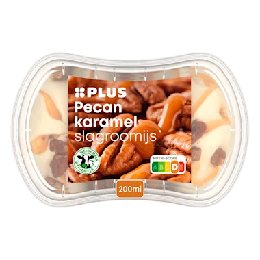 Ingrediënten :37% magere MELK, 21% slagroom (MELK), 10% karamelsaus (glucose-fructosestroop, suiker, water, gezoete gecondenseerde MELK (MELK, suiker), boter (MELK), gemodificeerd maïszetmeel, 5% karamel (glucosestroop, suiker, water), verdikkingsmiddel: E407, voedingszuur: E331, emulgator: E471, aroma, zout), water, suiker, glucosestroop, glucose-fructosestroop, 1,9% gekaramelliseerde stukjes PECANNOOT (76% PECANNOOT, suiker), 1,0% karamelpoeder (weipoeder (MELK), boter (MELK), maltodextrine, suiker, magere MELKPOEDER, natuurlijk aroma), natuurlijk roomaroma (MELK), aroma's, 0,3% ahornsiroop, emulgator: E471, stabilisator: E410/E412, gebrande suikerstroop, kleurstof: E150d.