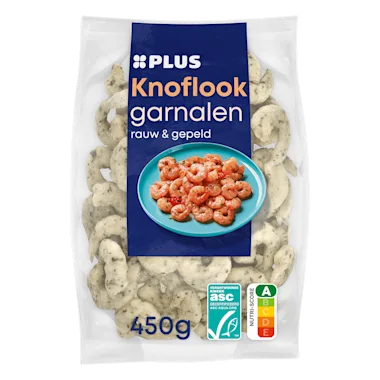 Ingrediënten :80% witpootgarnaal (93% witpootgarnaal* (Litopenaeus vannamei) (SCHAALDIEREN), 6% water, zout, zuurteregelaar: E330/E331), 20% knoflookmarinade (water, maltodextrine, koolzaadolie, suiker, 6% knoflook, zout, tapiocazetmeel, TARWEZETMEEL, limoensappoeder, peterselie, oregano, ui, zwarte peperpoeder, gistextract (GERST), natuurlijk knoflookaroma).