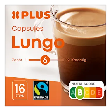 Gebruik één koffiecapsule per kopje. Stel de Dolce Gusto®** koffiemachine in op 4 streepjes voor de koffie. Gebruik vers koud water en volg verder de gebruiksaanwijzing van de koffiemachine. **Dolce Gusto® is een merk van een derde partij die niet verbonden is met PLUS Retail B.V.