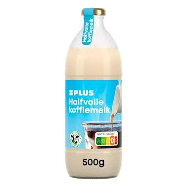 Halfvolle koffiemelk, gesteriliseerd. Melkvet 4%, vetvrije melk droge stof 20%