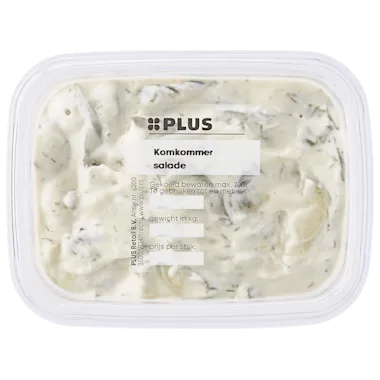 Ingrediënten :56% komkommer, water, raapzaadolie, suiker, maïszetmeel, VRIJE-UITLOOPKIPPENEI-EIGEEL, azijn, zout, gemodificeerd maïszetmeel, verdikkingsmiddel: E415, conserveermiddel: E202/E211, bieslook, dille, voedingszuur: E330.
