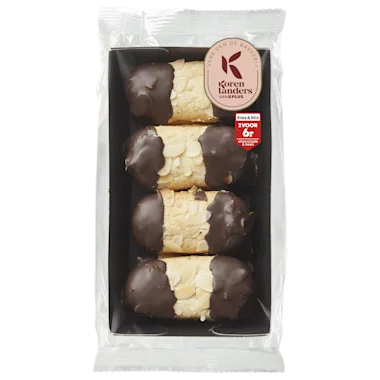 Ingrediënten :Suiker, witte bonen, plantaardige oliën en vetten (palmpit, palm, koolzaad, raapzaad), 8% AMANDELEN, SOJABONEN, SCHARRELKIPPENEI-EIWIT, gemodificeerd aardappelzetmeel, rijstbloem, cacaopoeder, dextrose, glucosestroop, abrikozenpitten, karamelsiroop, lactose (MELK), invertsuikerstroop, zout, aroma, SCHARRELKIPPENEI-EIWITPOEDER, natuurlijk aroma, kleurstof: karamel/carotenen, gedroogde glucosestroop, emulgator: E471/E322(SOJA)/E492, verdikkingsmiddel: E412/E440/E466, stabilisator: sorbitolen.