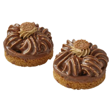 Roomboteramandelslof met 42% mokka-karamelcrème gedecoreerd met 9% melkchocolade