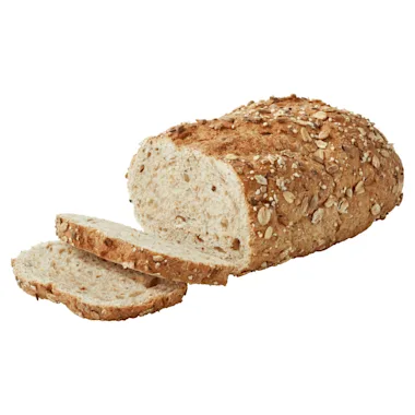 27% VOLKORENTARWEMEEL, 23% TARWEBLOEM, water, 9% zuurdesem (ROGGE, TARWE), rijstemeel, TARWEGLUTEN, zonnebloempitten, lijnzaad, 1,7% HAVERVLOKKEN, 1,2% gierst, 1,2% GERSTEVLOKKEN, 1,2% TARWEVLOKKEN, 1,2% ROGGEVLOKKEN, bakkerszout, SOJAGRITS, 0,6% rijstvlokken, bakkersgist, suiker, 0,2% moutmeel (geroosterd GERST, TARWE), emulgator: E472e, raapzaadolie, veldbonenmeel, meelverbeteraar: E300, enzym (TARWE).