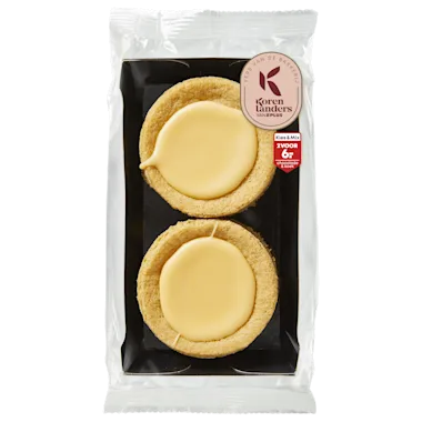 Ingrediënten: Suiker, TARWEBLOEM, water, roomboter (MELK), palmolie ongehard, glucosestroop, raapolie, gemodificeerd zetmeel, dextrose, TARWEMEEL, rijsmiddel: E450/E500, invertsuikerstroop, voedingszuur: E330, emulgator: E322/E420/E471/E472c, zout, aardappelzetmeel, verdikkingsmiddel: E440, citroenvezel, aroma, natuurlijk citroenaroma, stabilisator: E422, plantaardige olie (kokos, zonnebloemolie), kleurstof: E160a, antioxidant: E307/E304, verdikkingsmiddel: E412, gemodificeerd TARWEZETMEEL, abrikozenpitten, AMANDELEN.