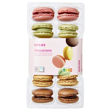 Macarons in de smaken vanille, karamel-zeezout, chocolade, citroen, framboos en pistache. Ontdooid.
