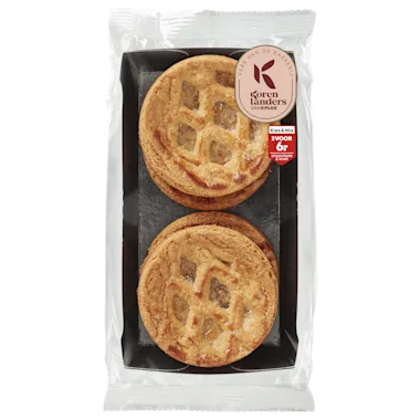 Ingrediënten :Suiker, TARWEBLOEM, roomboter (MELK), 4,6% appelpuree, 5% SOJABONEN, rozijnen, plantaardige oliën (palm, raapzaad, kokos), SCHARRELEI, glucosestroop, gemodificeerd zetmeel (aardappel, mais), dextrose, invertsuikerstroop, aardappelzetmeel, rijsmiddel: E500/E450, TARWEMEEL, maiszetmeel, stabilisator: sorbitolen, geleermiddel: pectinen, AMANDEL, zout, verdikkingsmiddel: guarpitmeel, citrusvezel, 0,2% abrikozenpitten, SCHARRELKIPPENEI-EIGEEL, antioxidant: E300, zuurteregelaar: citroenzuur, conserveermiddel: E202, kleurstof: E160a/E101.