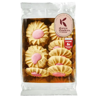 Ingrediënten :TARWEBLOEM, 28% roomboter (MELK), suiker, SCHARRELEI, glucosestroop, water, invertsuikerstroop, zout, kleurstof: E160a/E120, emulgator: E471, voedingszuur: citroenzuur.