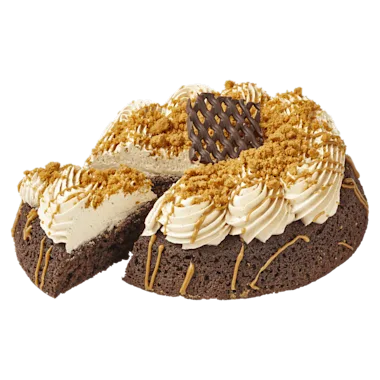 Browniecaketaartje met 42% speculooscrunch en 20% speculooscrème en 0,9% chocoladedecoratie