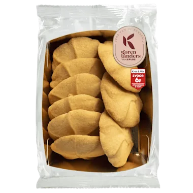 Ingrediënten :TARWEBLOEM, 32% roomboter (MELK), suiker, SCHARRELEI, invertsuikerstroop, zout, kleurstof: carotenen.