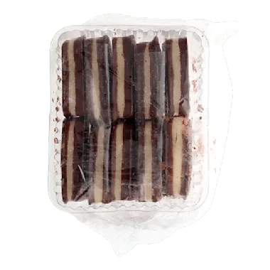 Ingrediënten: plantaardige olie (raapzaad, kokos, palm, gedeeltelijk gehard), suiker, water, EI, TARWEBLOEM, SOJABONEN, magere cacaopoeder, abrikozenpit, glucosestroop, lactose (MELK), amandelen, emulgator (E472b, E477, E472c, E471, E492, E322), TARWEZETMEEL, natuurlijk aroma, stabilisator (E420), rijsmiddel (E450i, E500iii), weipoeder (MELK), glucosestrooppoeder, conserveermiddel (kaliumsorbaat), kleurstof (beta caroteen), voedingszuur (citroenzuur), SOJABLOEM, verdikkingsmiddel (natriumalignaat, xanthaangom), invertase, zout.