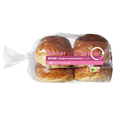 zachte witte bolletjes, rijkelijk gevuld met rozijnen en krenten