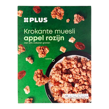 Krokante muesli met rozijnen en gedroogde appelstukjes
