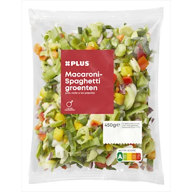 Ingrediënten :44% prei, 31% rode ui, 13% groene paprika, 8% rode paprika, 5% gele paprika.