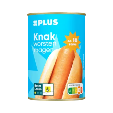 BETER LEVEN KEURMERK Het varkens- en kippenvlees in deze Plus Magere knakworsten is op diervriendelijkere wijze geproduceerd en daarom heeft de Dierenbescherming