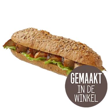 wit meergranenbroodje (TARWEBLOEM, water, zonnebloempitten, HAVERVLOKKEN, GERSTEMOUT, lijnzaad, SESAMZAAD, TARWEGLUTEN, bakkerszout (zout, kaliumjodide), ROGGEBLOEM, ROGGEZUURDESEMPOEDER, TARWEZUURDESEM, gekaramelliseerde suiker, dextrose, TARWEMOUT, gist, TARWEZETMEEL), kipfilet omhuld met kalkoenhuid (kipfilet, kalkoenhuid, zout, natuurlijke aroma's, glucose, azijn, conserveermiddel E250, zuurteregelaar: E327), ijsbergsla, barbecuesaus (tomatenpuree, ui, paprika, suiker, azijn, water, gemodificeerd maïszetmeel, zout, natuurlijk aroma (SOJA), ui-extract, korianderzaad, fenegriekzaad, voedingszuur: citroenzuur, conserveermiddel: E202).