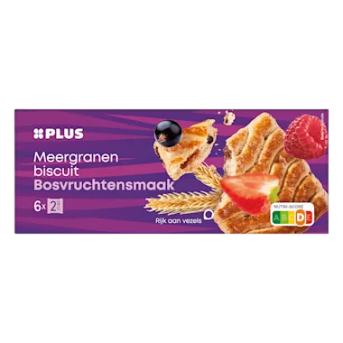 Meergranenbiscuit met rozijnen en krenten, met bosvruchtensmaak en toegevoegde vitamine B6 en mineralen