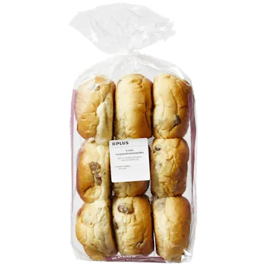 Ingrediënten :TARWEBLOEM, 30% rozijnen, water, bakkersgist, suiker, TARWEGLUTEN, 1,9% krenten, weipoeder (MELK), emulgator: E472e/E471/E481, veldbonenmeel, boterconcentraat (MELK), bakkerszout, voorverstijfselde ROGGEBLOEM, plantaardige oliën (raapzaad, zonnebloem), glucosestroop, aroma, dextrose, TARWEMOUTMEEL, MELKEIWITTEN, erwteiwit, rijsmiddel: E500, enzym (TARWE), meelverbeteraar: E300/E920 (plantaardig), kleurstof: E100.