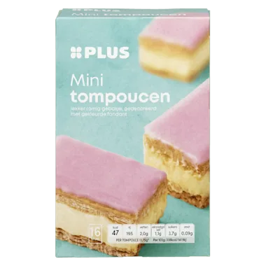 Neem het gewenste aantal mini tompoucen uit de verpakking en laat deze circa 1 uur ontdooien op kamertemperatuur of 4 uur in de koelkast. Na ontdooien maximaal 24 uur bewaren in de koelkast.