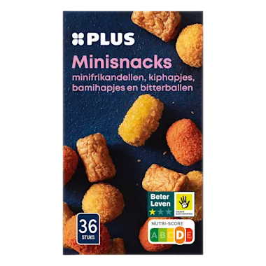 *Beter Leven keurmerk. Het kippenseparatorvlees, varkensspek en gekookte rundvlees in deze PLUS minisnacks is op diervriendelijkere wijze geproduceerd en daarom heeft de Dierenbescherming het Beter Leven keurmerk 1 ster togekend aan dit product.