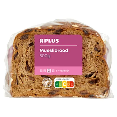 21% Rozijnen, VOLKORENTARWEMEEL, TARWEBLOEM, water, 6% krenten, zonnebloempitten, TARWEGLUTEN, bakkersgist, 2,1% HAZELNOTEN, 2,1% AMANDELEN, 2,0% HAVERVLOKKEN, weipoeder (MELK), veldbonenmeel, dextrose, bakkerszout, emulgator: E471/E482/E472e (TARWE), moutmeel (GERST, TARWE), geïnactiveerd TARWEDESEM, wei-eiwit concentraat (MELK), plantaardige oliën (raapzaad, zonnebloem), abrikozenpuree, suiker, kaneel, rijsmiddel: E500, natuurlijk aroma, voedingszuur: E270, azijn, glucosestroop, aroma, enzym (TARWE), meelverbeteraar: E300/E920 (plantaardig).