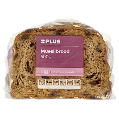Ingrediënten :21% Rozijnen, VOLKORENTARWEMEEL, TARWEBLOEM, water, 6% krenten, zonnebloempitten, TARWEGLUTEN, bakkersgist, 2,1% HAZELNOTEN, 2,1% AMANDELEN, 2,0% HAVERVLOKKEN, weipoeder (MELK), veldbonenmeel, dextrose, bakkerszout, emulgator: E471/E482/E472e (TARWE), moutmeel (GERST, TARWE), geïnactiveerd TARWEDESEM, wei-eiwit concentraat (MELK), plantaardige oliën (raapzaad, zonnebloem), abrikozenpuree, suiker, kaneel, rijsmiddel: E500, natuurlijk aroma, voedingszuur: E270, azijn, glucosestroop, aroma, enzym (TARWE), meelverbeteraar: E300/E920 (plantaardig).
