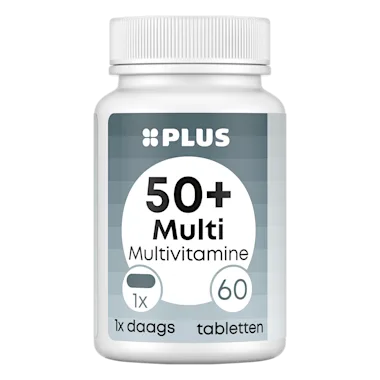 Plus Multi Vitaminen-Mineralen 50+ is speciaal ontwikkeld voor mensen in de leeftijd van 50 jaar en ouder. Zorgt mede voor een goede weerstand. Met vitamine B6, B12, C en D ter ondersteuning van het immuunsysteem en vitamine D om sterke botten te behouden. Niacine en magnesium zijn goed voor het geheugen en leveren een bijdrage aan een heldere geest.