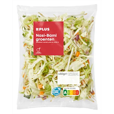 Ingrediënten :33% spitskool, 25% prei, 16% taugé, 12% wortel, 12% rode ui, 3% rode peper.