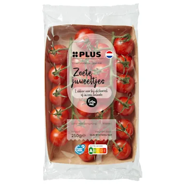 Deze mini cherry trostomaten zijn echte pareltjes. Ze hebben een ronde vorm, dieprode kleur en een glanzende huid. De smaak is onweerstaanbaar zoet. En omdat ze ook nog eens lekker knapperig zijn, zijn het de perfecte smaakbommetjes voor het snackmoment. Dat is intens genieten! Deze tomaatjes zijn ook een heerlijke smaakmaker in de salade.