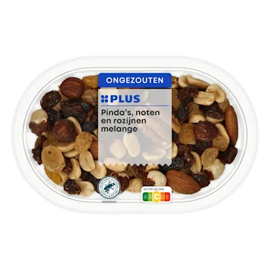 Ingrediënten :40% Rozijnen, 29% PINDA, 10% HAZELNOTEN*, 10% AMANDELEN, 9% PECANNOTEN, zonnebloemolie, conserveermiddel: E220 (SULFIET).