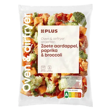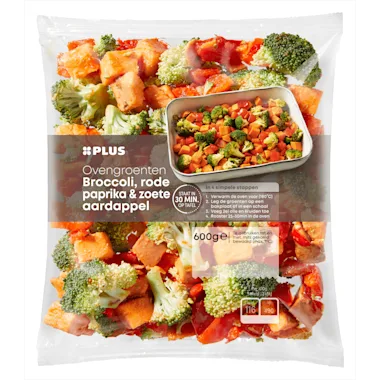 Ingrediënten :45% zoete aardappel, 30% paprika, 25% broccoli.