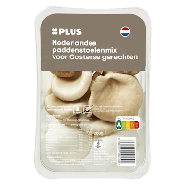 ingrediënten :65% champignon, 25% oesterzwam, 10% shii-take.