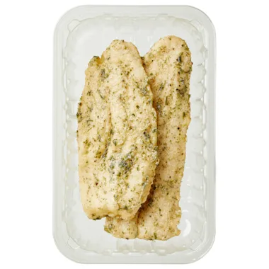 Ingrediënten: 72% pangasiusfilet (VIS)*, raapzaadolie, TARWEBLOEM, zonnebloemolie, water, gemodificeerd TARWEZETMEEL, zout, natuurlijke aroma's, knoflookgranulaat, uiengranulaat, zwarte peper, gebroken groene peperkorrels, voedingszuur (E331, E332), dextrose, kurkuma-extract, gedroogde bieslook, dille, peterselie, dragon, rozemarijn. *Van een ASC-gecertificeerde, verantwoorde kwekerij. www.asc-aqua.org. ASC-C-00492*Pangasius spp. gekweekt in Vietnam, kweekmethode: open aquacultuur.