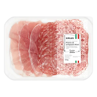 Vleeswarenschotel met Napolitaanse salami, Italiaanse ham en gedroogde ham