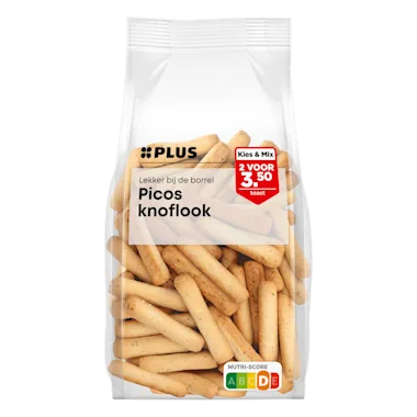 Plus Pico's knoflook zijn Italiaanse pico's met knoflooksmaak, gemaakt volgens authentiek Italiaans recept, met 100% natuurlijke ingrediënten. Ideaal om te dippen.