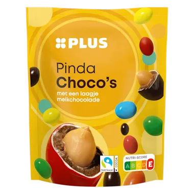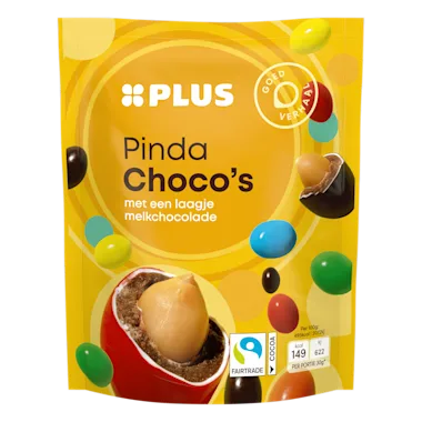 Pinda's omhuld met 47% melkchocolade en een suikerlaagje