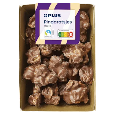 Ingrediënten :50% melkchocolade (suiker, volle MELKPOEDER, cacaoboter, cacaomassa, emulgator: E322 (SOJA), natuurlijk vanillearoma), 50% PINDA'S.